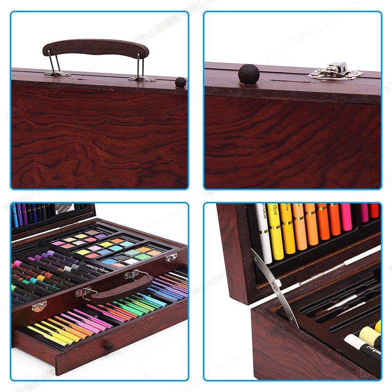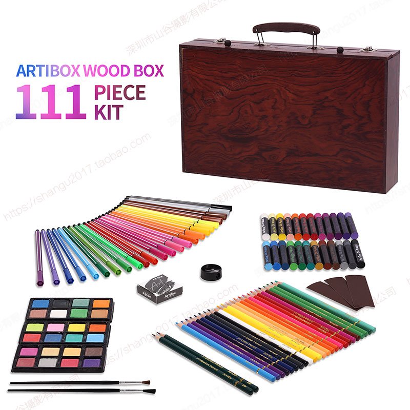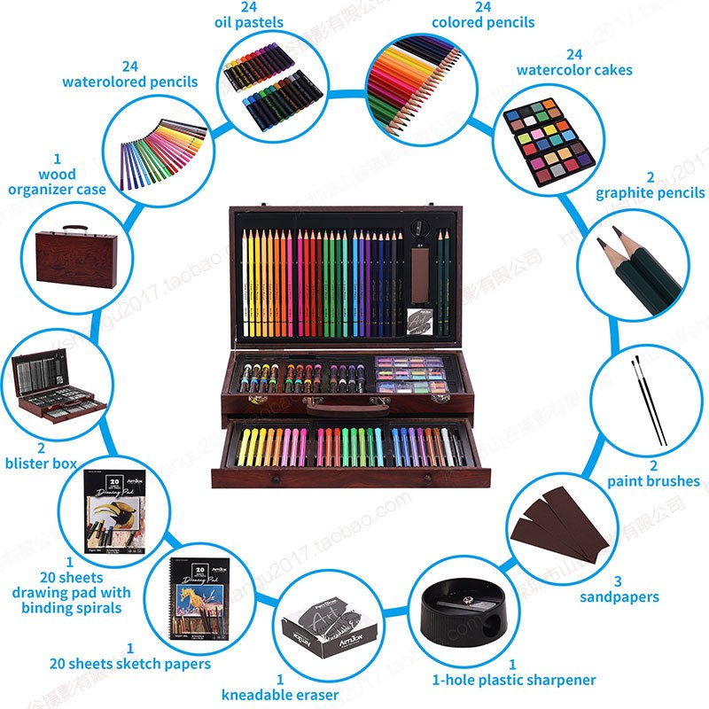 1 x Wood organizer case. - Convenient – Everything can be stored neatly in the smooth wooden box, with metal closures and a durable handle. Portable carrying case keeps art materials organized, allowing ease of carrying to school or for outdoor sketching.