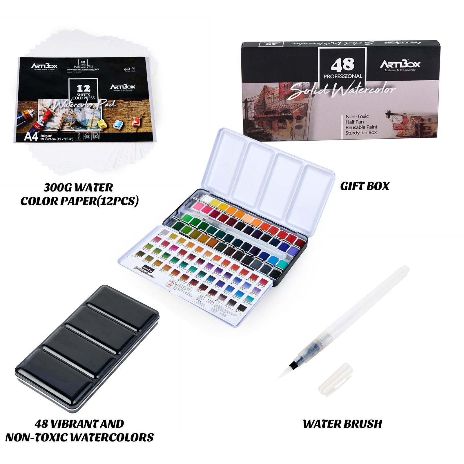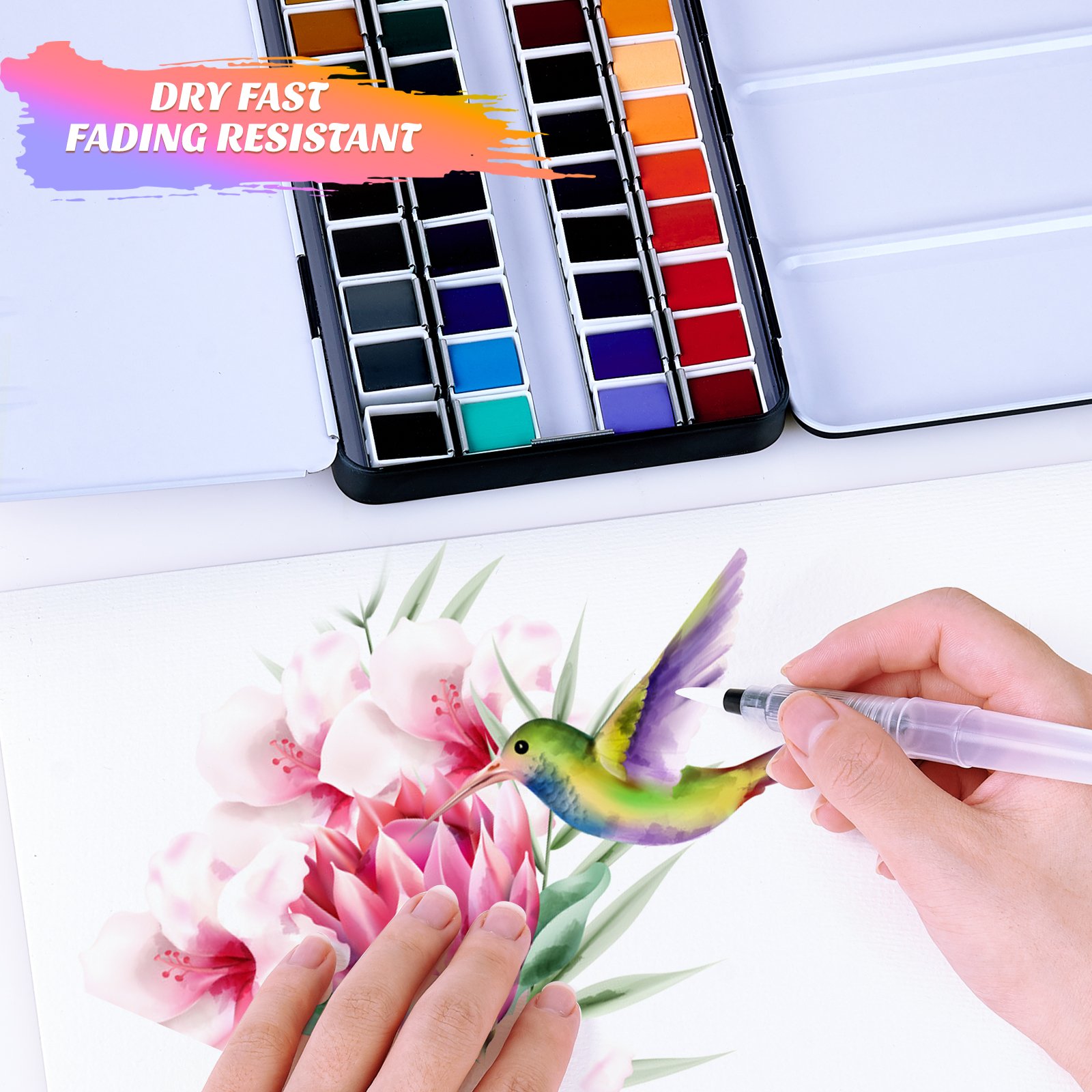 [High Quality] The watercolor paper included with the watercolor set is of professional-grade. This allows ease of creating simple and uniform watercolor paintings. - [REMOVABLE COLOR BLOCK]: Each small color block in the watercolor set can be removed separately, which can effectively avoid dyeing between different colors. After the color block is used up, refills are available, making it a sustainable investment for long-term use.