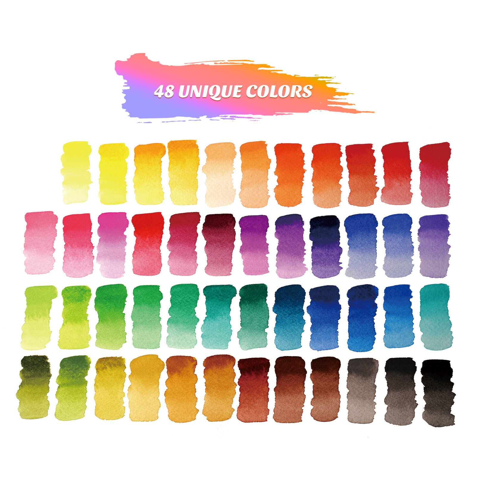 1 x Plastic box - [48 UNIQUE COLORS]: Our colors are bright, fade-resistant, and rich. Easy blending allows artists to create endless color combinations. With high solubility and transparency, it is easy to color.