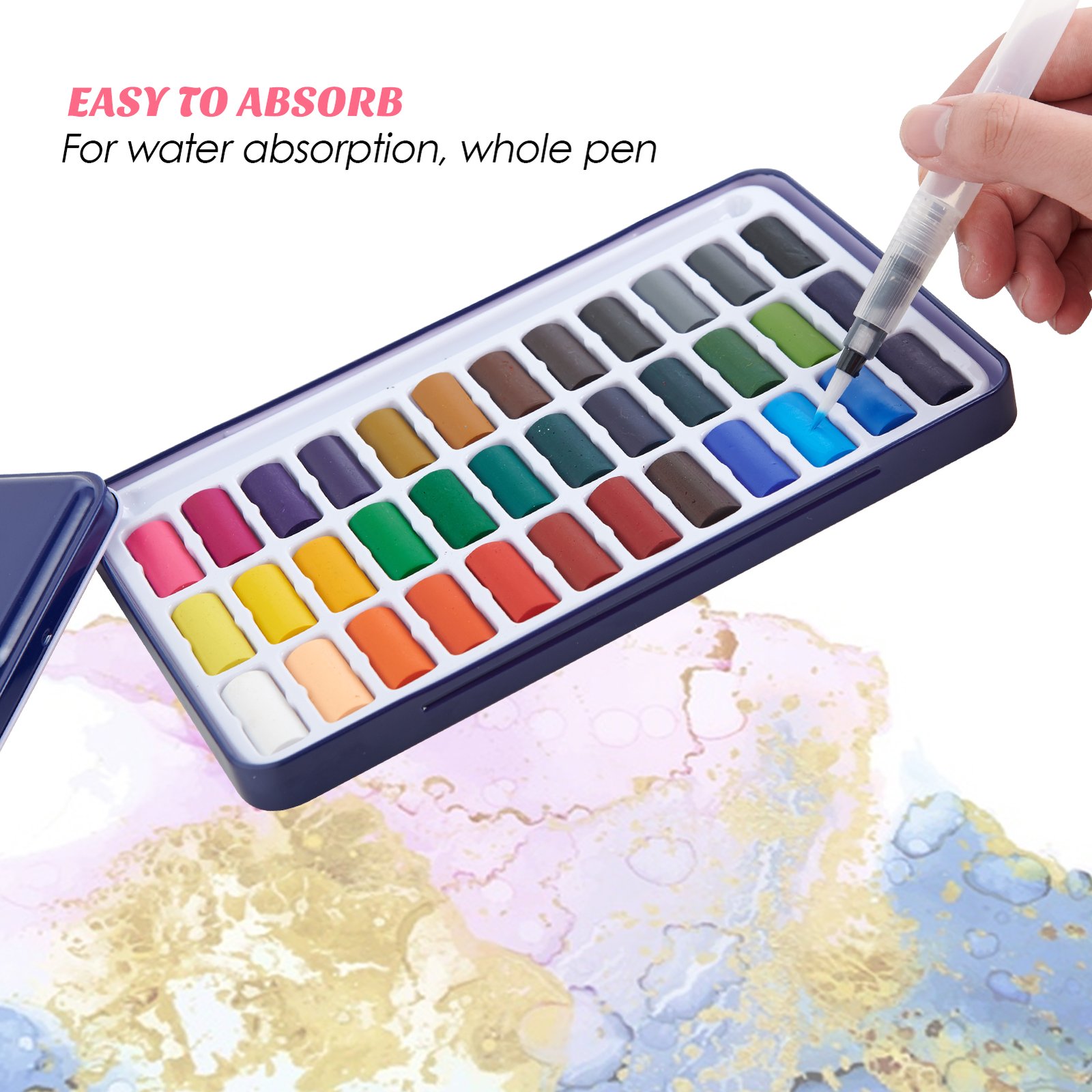 - [CONVENIENT]: Plastic box is small and highly portable. Carry it in your bag for watercolor painting anytime, anywhere. The easy-squeeze water brush pen brush allows painting without a need for a water-holder.